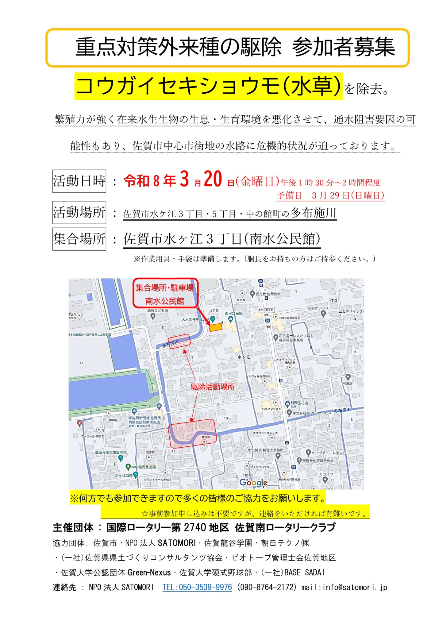 重点対策外来種「コウガイセキショウモ」駆除活動20260320